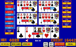 Super Triple Play is an offshoot of the wildly popular Triple Play game, but with a twist for every player who likes to get four-of-a kinds. For just one extra coin per hand, players get a shot at winning double and even triple the normal jackpot on four-of-a kinds. Instead of 400 for four 3s, how about 800? Everyone loves quads and this game makes them even better!
