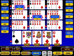 Play the Double Pay Poker game -- it's a fun bet with action on the deal and on the draw! Any winning combinations dealt in the opening hands are paid on the deal according to a unique "deal" pay table. After the deal, hold promising cards and draw to improve the hands, and get paid again for any winners at the final outcome according to a traditional, familiar pay table. Getting paid twice is awesome, and with Triple Play, Five Play and Ten Play options, your wins can really mount up! Choose from four of the most popular video poker games including Deuces Wild Poker, Double Bonus Poker, Double Double Bonus Poker, and Triple Double Bonus Poker.