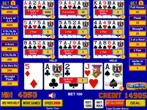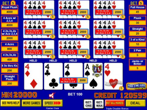 This game is enhanced with the newest buy-a-pay feature to hit poker: The Dream Card. A maximum bet increases the chances of winning a Dream Card. If the extra wager is placed and the feature awards it, optimal autohold strategy is employed to pick the perfect card to complete the dealt hand. Players are given the card yielding the highest expected return. In other words, players can count on a 4-of-a-kind in place of a 3-of-a-kind on the deal!