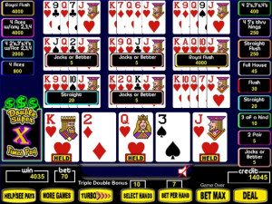 Double Super Times Pay Poker gives you exciting and frequent multiplier action, on average every eight hands. With max bet per hand, two multipliers are possible- on the deal and again on the draw, for a combined multiplier of up to 20X!