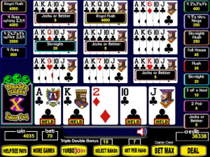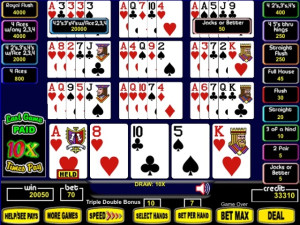 Double Super Times Pay Poker gives you exciting and frequent multiplier action, on average every eight hands. With max bet per hand, two multipliers are possible- on the deal and again on the draw, for a combined multiplier of up to 20X!